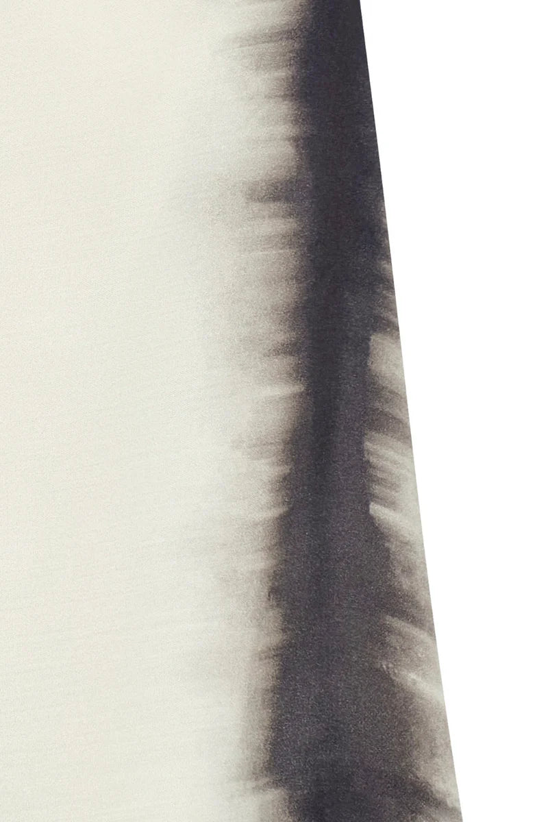 Blusa noche de lirios ivory negro. Presenta un cuello drapeado sutil que suaviza la línea del escote y realza la caída natural de la tela. El diseño se complementa con un detalle en degradé a contraste en uno de los costados, creando un efecto artístico y moderno, con un acabado levemente satinado.