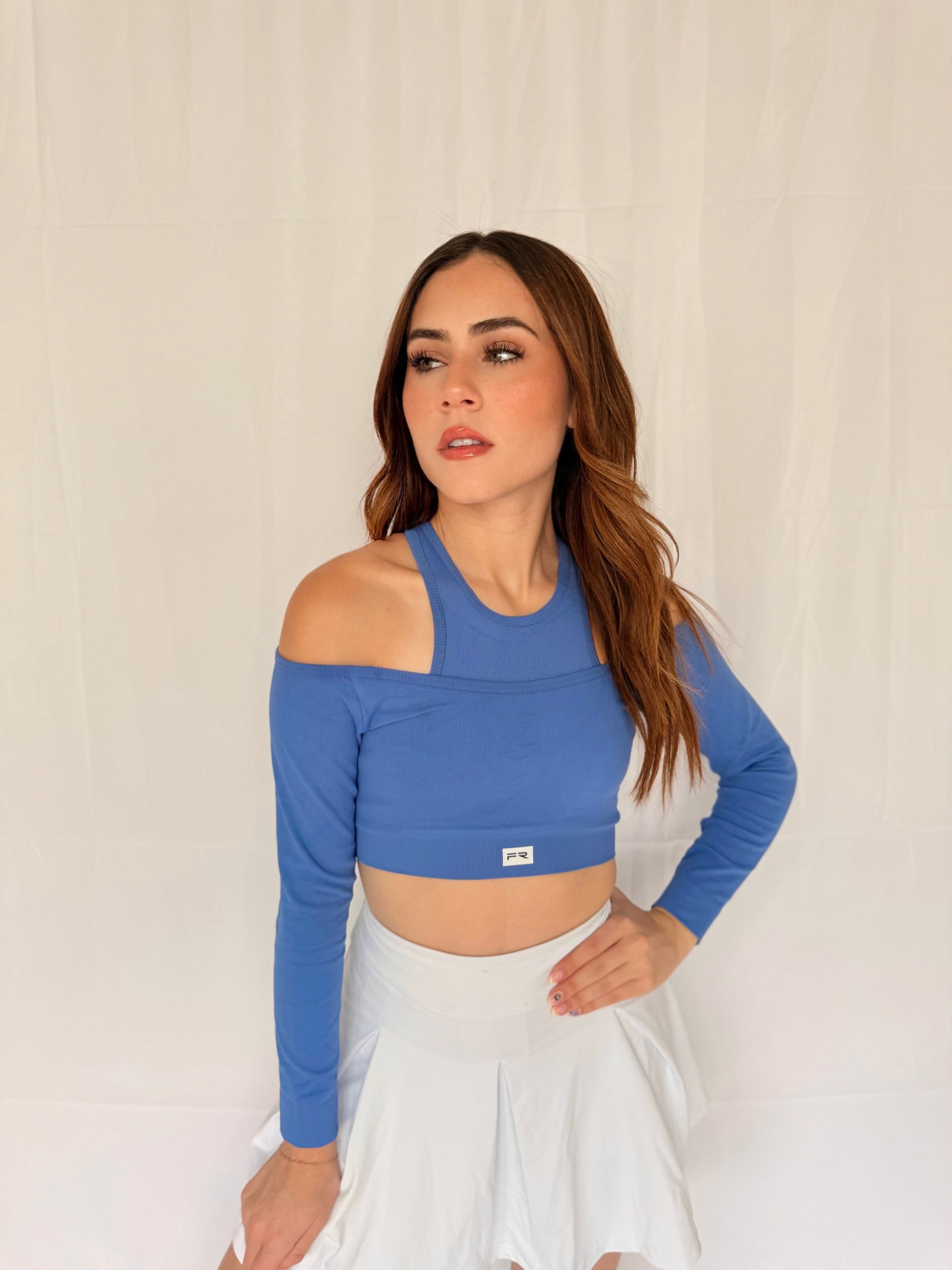 TOP MANGA LARGA SIN COSTURAS AZUL PILATES