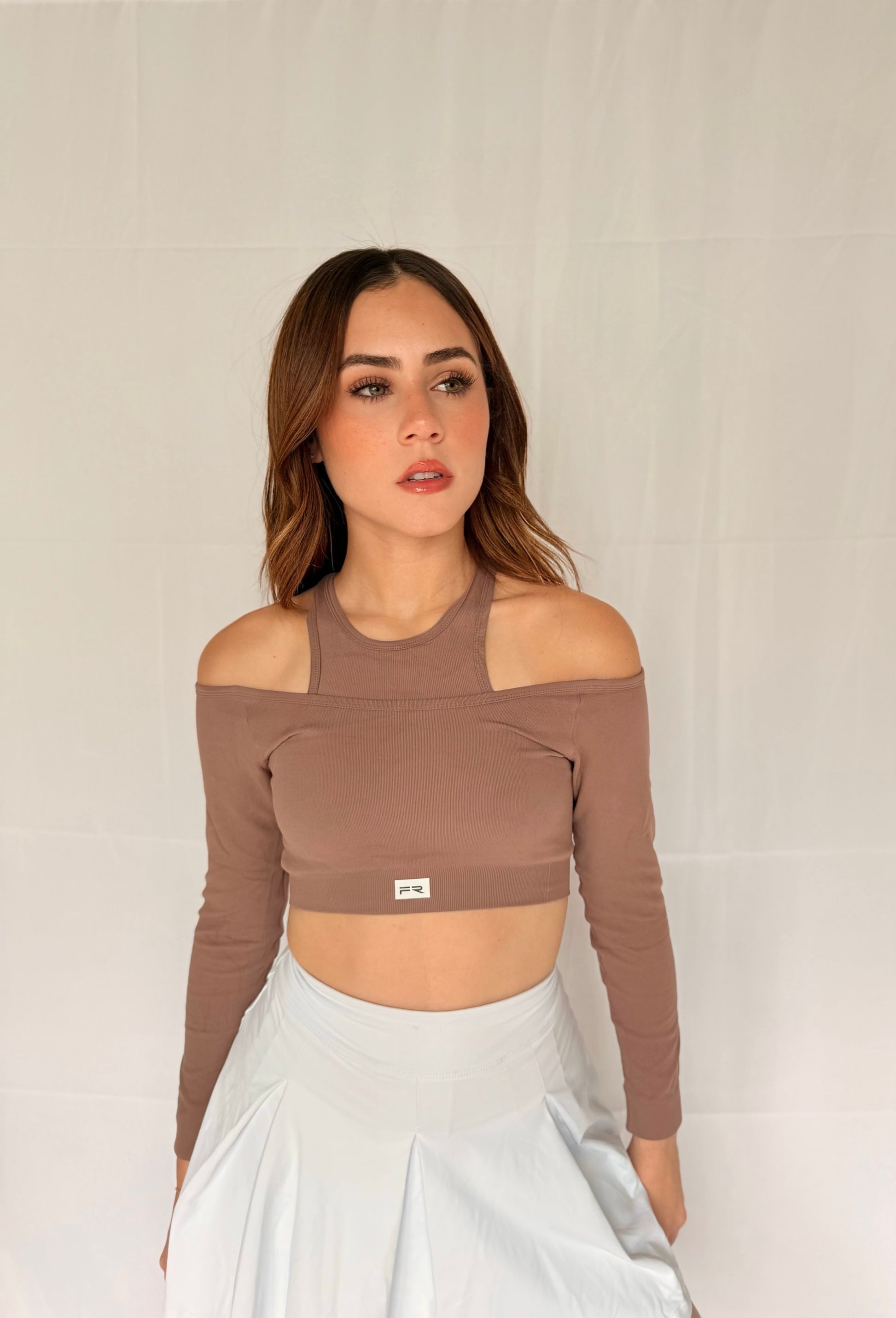 TOP MANGA LARGA SIN COSTURAS CAFE CON LECHE PILATES
